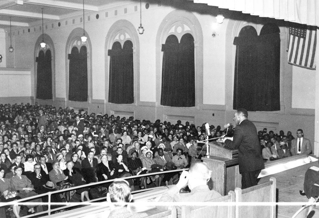 The event formed part of the Institute of Religion lecture series organized by the United Church of Raleigh, a congregation that would later stand in the lineage of what is now Community United Church of Christ. At the time it was a Protestant congregation. They rented the auditorium for a speech by Dr. King, who by then had already become one of the most scrutinized and polarizing figures in the country. They anticipated an attendance beyond the capacity of its sanctuary. The symbolism did not require interpretation. It was embedded in the floor plan.